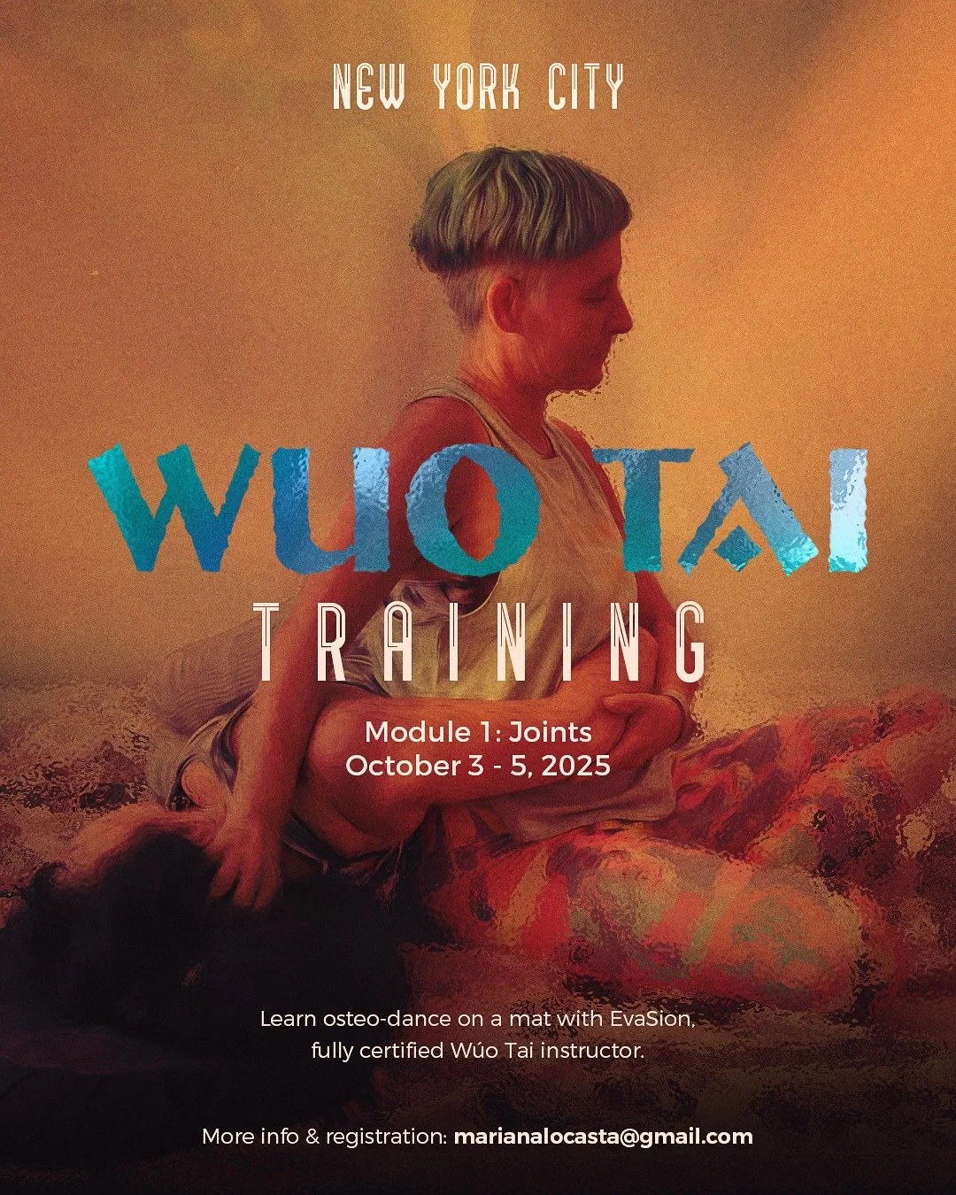 From October 3 to 5, join EvaSion, a certified teacher from the Official Wùo Taï School in France, for three full days (10am–6pm) dedicated to the Joints module — the first step on the official Wùo Taï path. This immersive experience is open to all levels — from bodyworkers to movers, dancers, yogis, or simply curious beings.